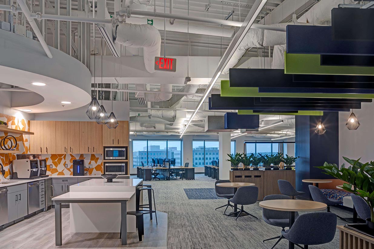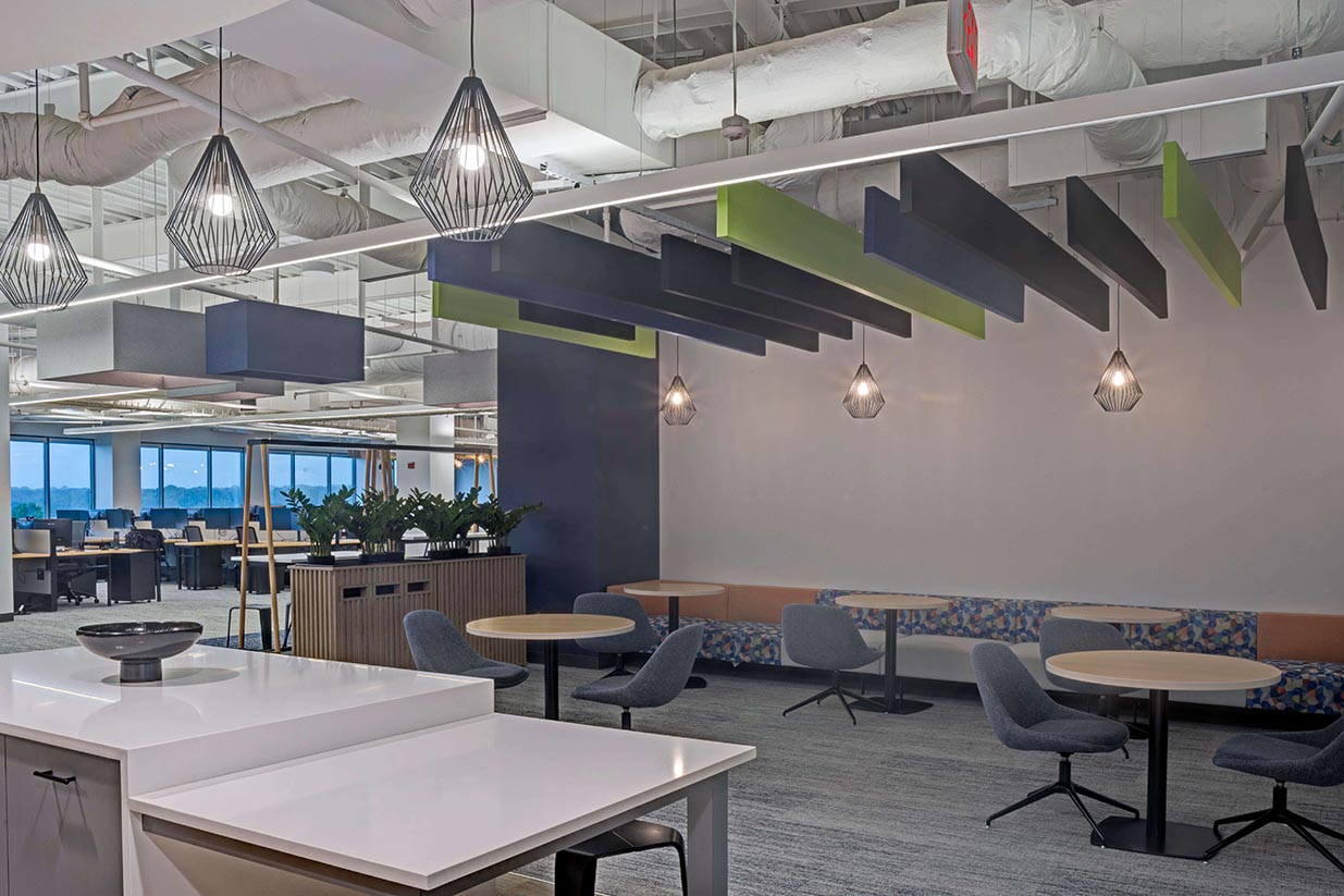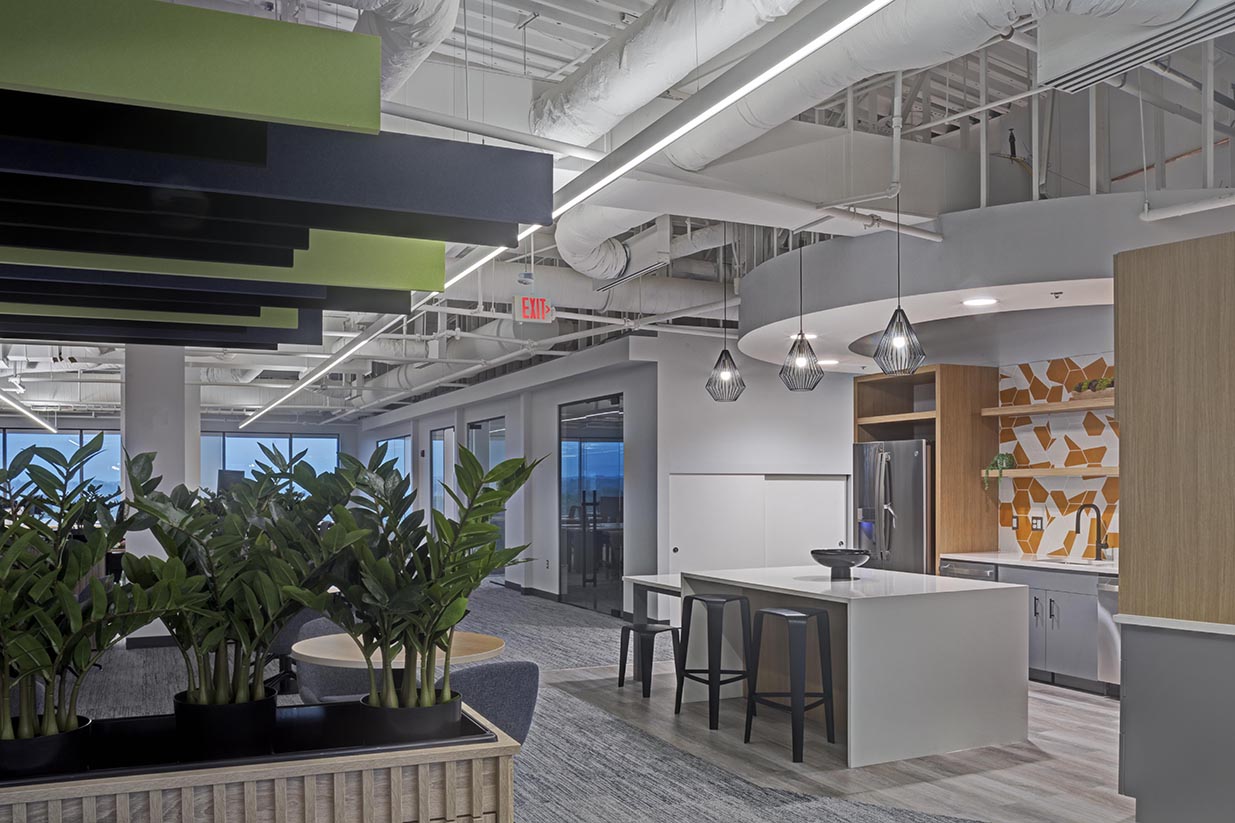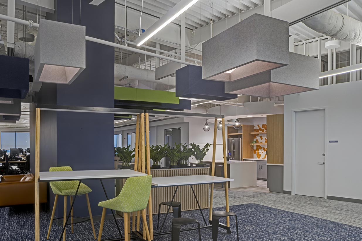 The sophisticated lighting and controls package consisted of approximately 20 different fixtures with custom layout patterns designed to blend seamlessly with sound baffles and furniture placement. Modular glass walls and doors throughout all offices and conference rooms provide exceptional aesthetics and openness to the space, allowing natural light from exterior windows to extend throughout the entire floor.